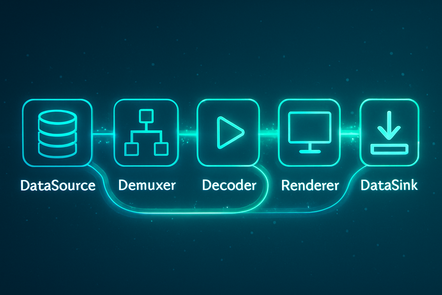 今回は、メディアプレイヤーの裏側にある「データパイプライン」の全体像と、DataSource、Demuxer、Decoder、Renderer、DataSinkといった主要なコンポーネントの役割をご紹介しました。